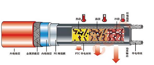 自限温电热带属并联电阻性结构,因为安装方便,使用灵活,在管道保温中运用很广泛。